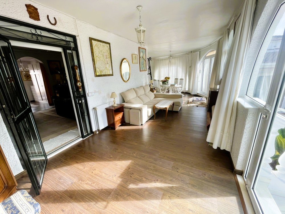 Set on a generous 1,000 m² plot with approximately 200 m² of built area, the property offers spacious and versatile accommodation. The villa features three bedrooms and two bathrooms, including a master bedroom with en-suite bathroom, a large and bright open-plan living and dining area, and a fully equipped independent kitchen. Adjacent to the kitchen is an additional room that can be adapted for various uses such as a utility room, office or extra living space.
